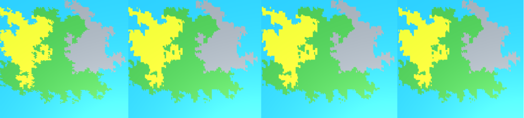 Luckily not too much research later I found an algorithm from which I am not entirely sure what the name is nor who invented it but it looked promising. According to the website I used it’s called “Grown Biomes”(Generating Terrain in Cuberite, n.d.).