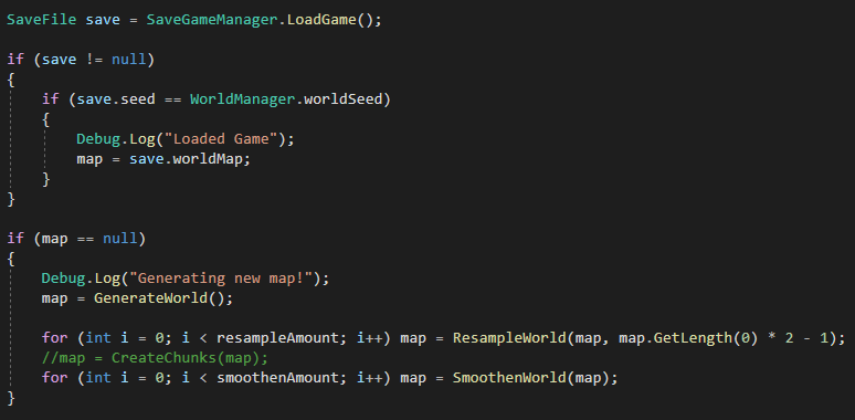 Now before generating a world we check the save file if the seed is equal to the current seed, if so then load the map. otherwise, generate a new one.