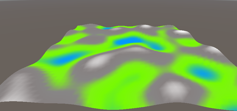 What makes Perlin Noise such a useful tool is that each point has a similar value to its neighbors. Due to this, you can make beautiful smooth height differences. See the image for an example taken from the meshes assignment earlier this semester. I won’t go into the mathematics of this algorithm but the source “Understanding Perlin Noise” from the paragraph above does a great job explaining how it works.