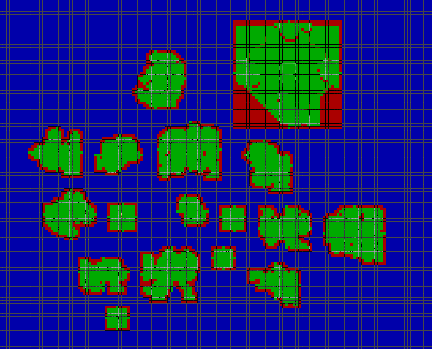 To generate the four islands I used the lazy flood fill algorithm. To connect all the rooms together I used Bresenham’s line algorithm (Flanagan, z.d.). It is a simple and efficient algorithm used to draw a line between two given points in a discrete grid system. The algorithm uses only integer arithmetic, making it fast and ideal for real-time applications.