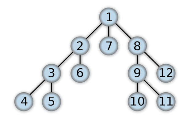 Depth-first search (DFS) is an algorithm for traversing a tree or graph. The algorithm starts at the root node and explores as far as possible along each branch before backtracking and working its way sideways into neighboring nodes. The algorithm requires a mechanism to memorize which nodes it has visited. On top of that each node should know which child nodes it has to make traversal possible.